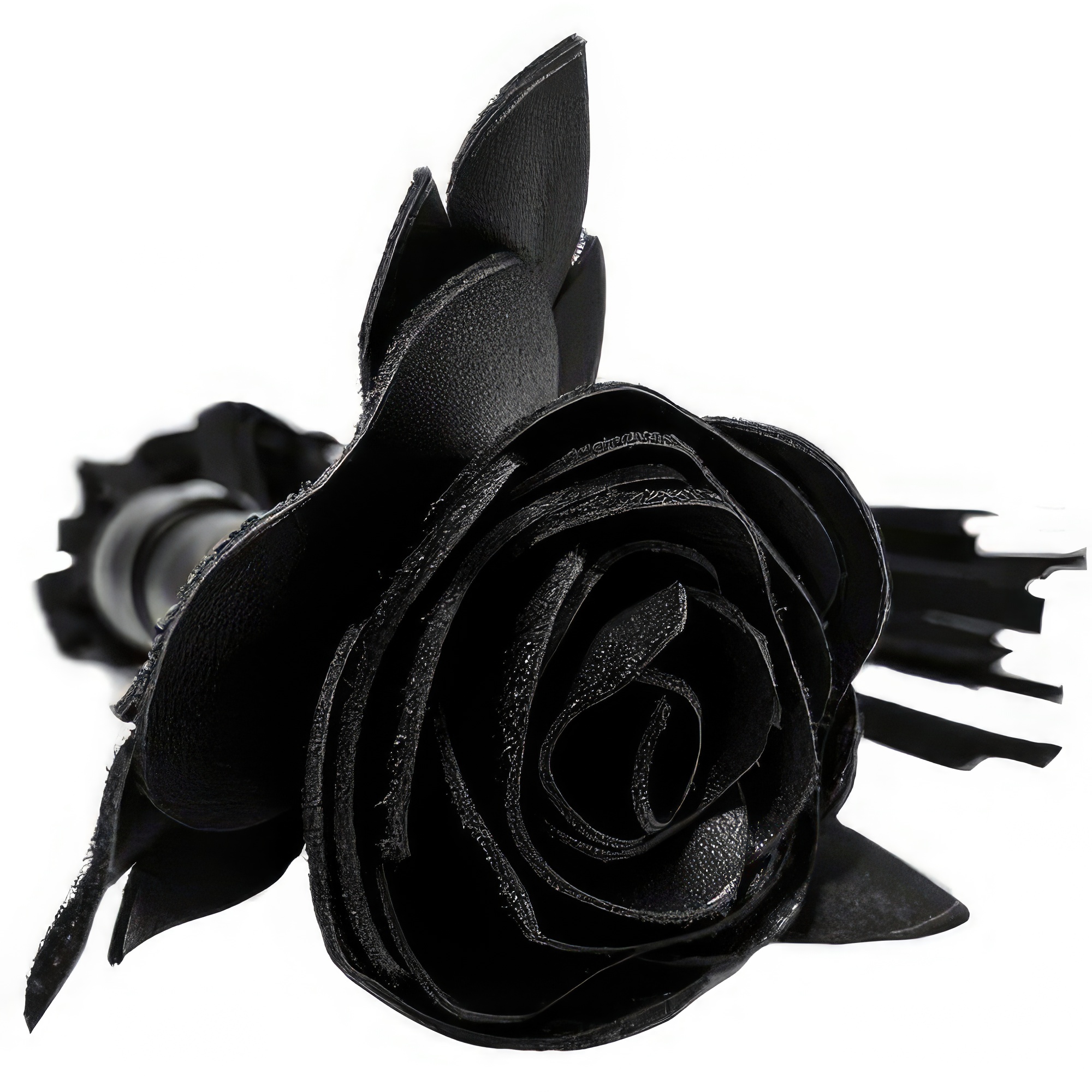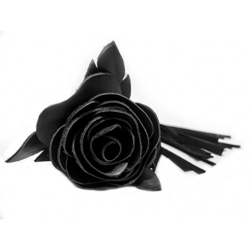 Цветок полностью выполнен из натуральной лаковой кожи, листочки розы и рукоятка выполнены из мягкой натуральной кожи, а хвосты плети - из натуральной мягкой замши.