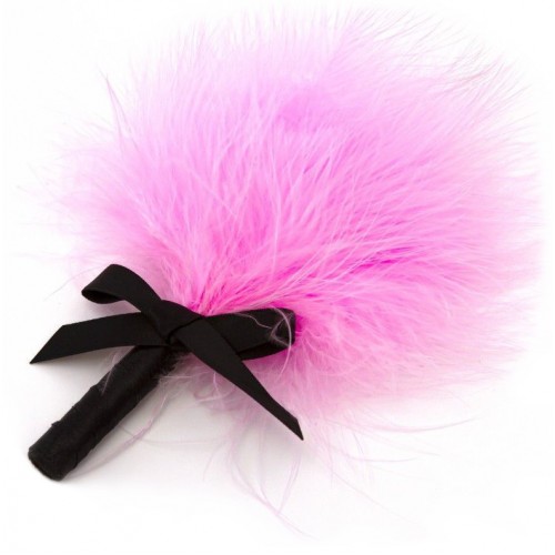 Розовый перьевой тиклер с атласной ручкой 16 см