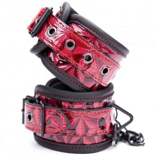 Размеры: - наручники: ширина 5,5 см, общая длина 32 см, по обхвату регулируются от 16 см до 25,5 см, длина цепочки с карабинами 15 см