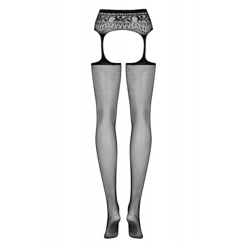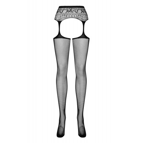 Чулки выполнены из прозрачной, мелкой сеточки черного цвета. Имеют удобную,широкую резинку на талии, которая гарантирует идеальную поддержку чулок на ножках.