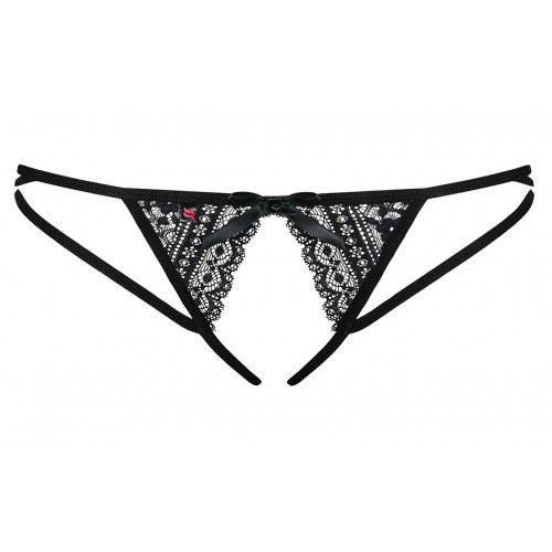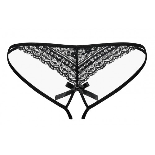 Детали: мягкая, эластичная резинка, открытая промежность - идеальное решение для смелых дам, нежная и эластичная ткань, невероятно очаровательное цветочное кружево, черный атласный бантик