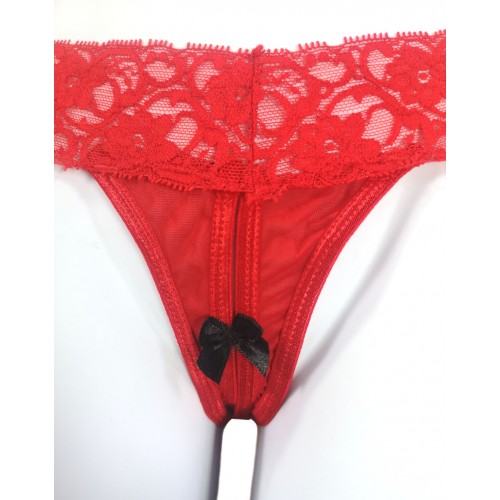Дерзкие красные трусики с открытой промежностью S