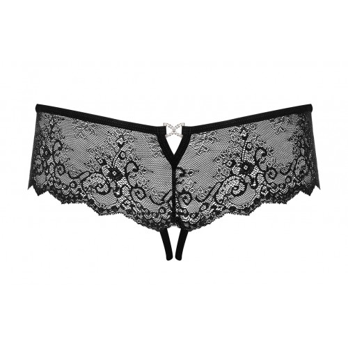 Детали: широкое кружево с нежным цветочным узором, резинки создают пикантную открытую промежность, шов между ягодицами соблазнительно подчеркивает формы, мерцающий декор на ягодицах (NickelFree - без никеля), деликатные эластичные ткани.