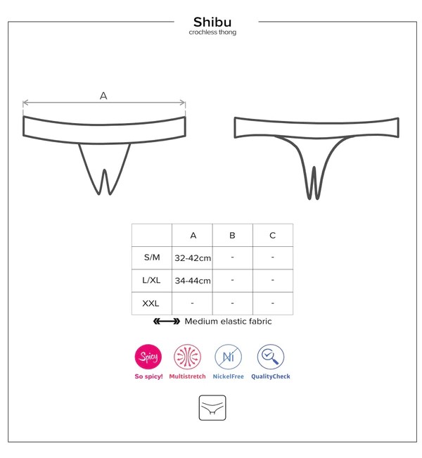 Трусики Shibu выполнены очень аккуратно, из прочной, эластичной и тонкой ткани, приятной к телу. Они сделаны с декоративным небольшим вырезом сзади, который будет красиво смотреться на пояснице, тогда как ягодицы будут полностью оголены. Открытые стринги визуально делают ягодицы более округлыми, придавая им аппетитную форму.