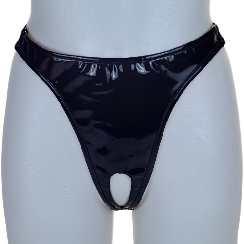 Черные лакированные стринги с доступом и кармашком для вибропули