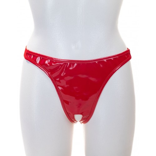 Красные лакированные стринги с доступом и кармашком для вибропули