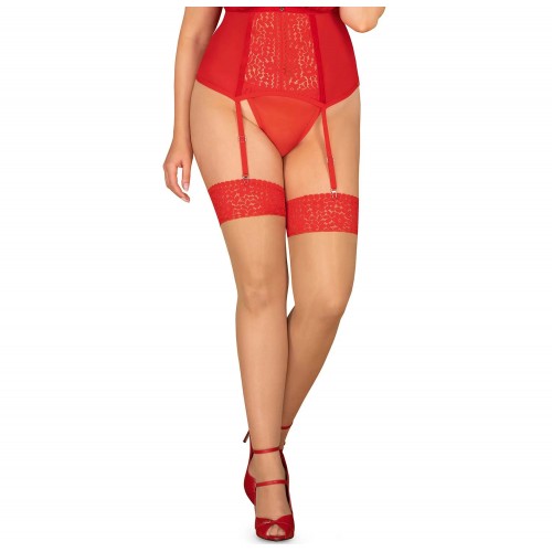 Красные чулки с кружевными вставками Blossmina 4XL/5XL