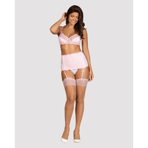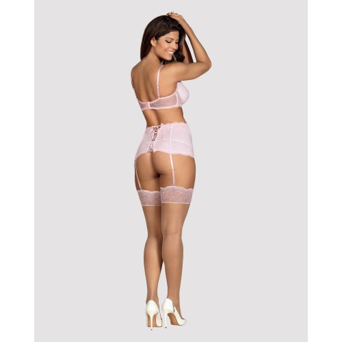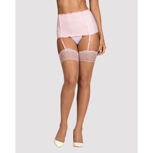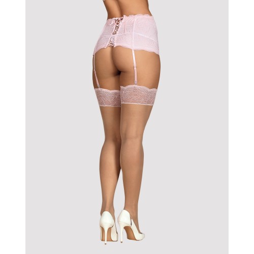Бежевые чулки с нежно-розовым кружевом Girlly S/M