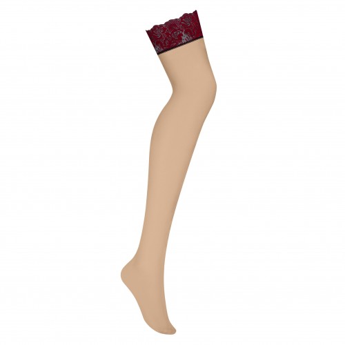 Бежевые чулки с красной кружевной резинкой S/M