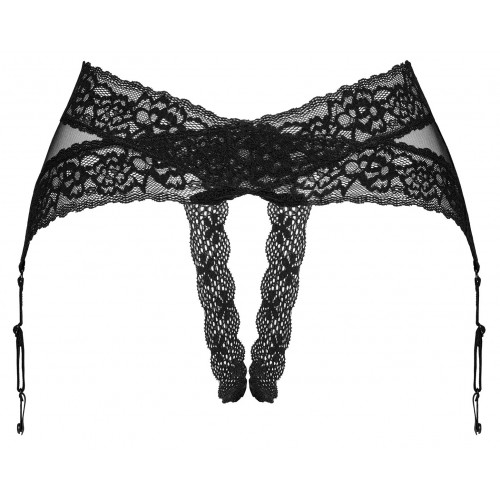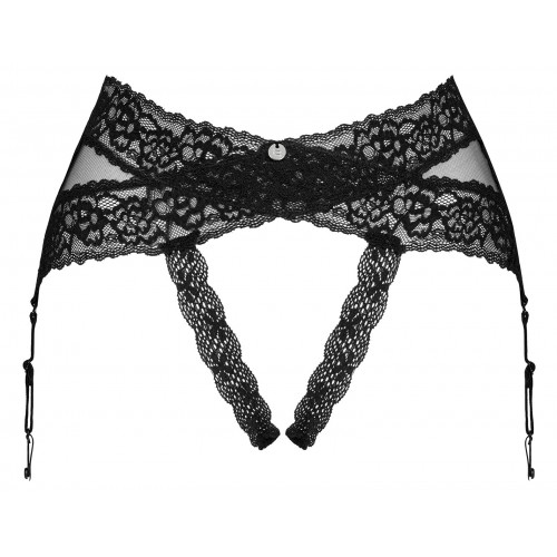 Детали: открытый пояс для чулок Lacrisia; прозрачная сетка в сочетании с элегантным кружевом – добавляет стиля и украшает фигуру; бижутерная подвеска спереди – очаровательный элемент; открытая промежность; лямки для чулок с возможностью регулировки – комфорт и удобство; эластичные и приятные на ощупь материалы.