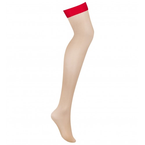 Шелковистые чулочки телесного цвета с контрастной красной коронкой не только удивительно деликатны, но и невероятно соблазнительны.