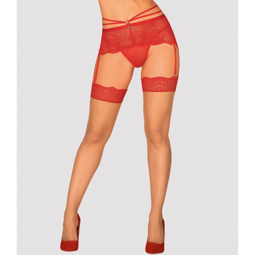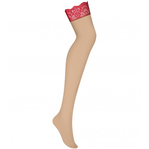 Детали: фантастические чулки с исключительно сексуальным дизайном; из нюдовой ткани; бедра украшены красным кружевом; чулки не являются самонесущими; эластичный, облегающий материал.