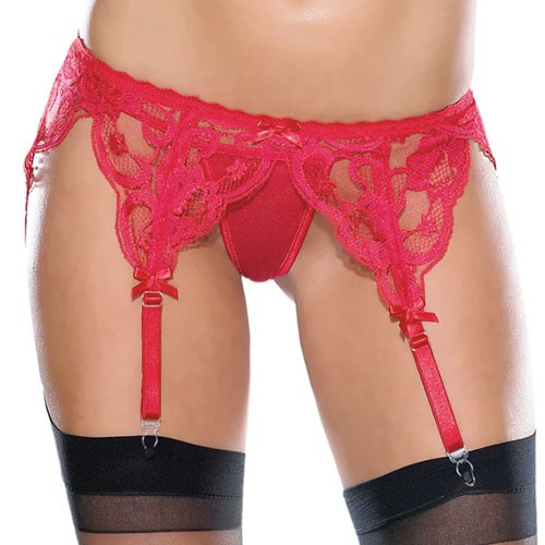 • Кружевной пояс для чулок красный XL