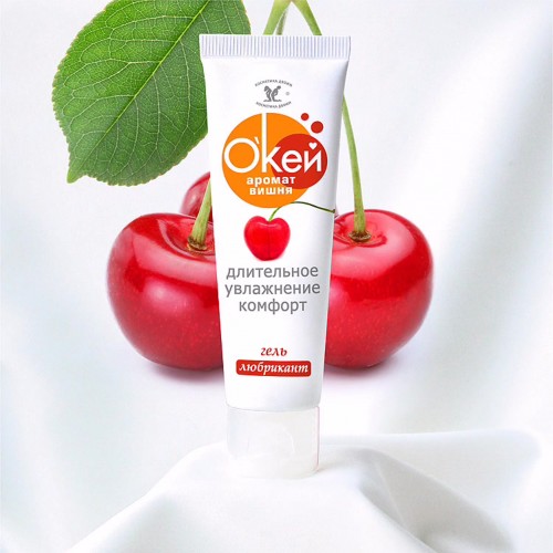Гель любрикант О'кей с ароматом вишни позволяет дополнить удовольствие от интимной близости любимым ароматом ягоды!