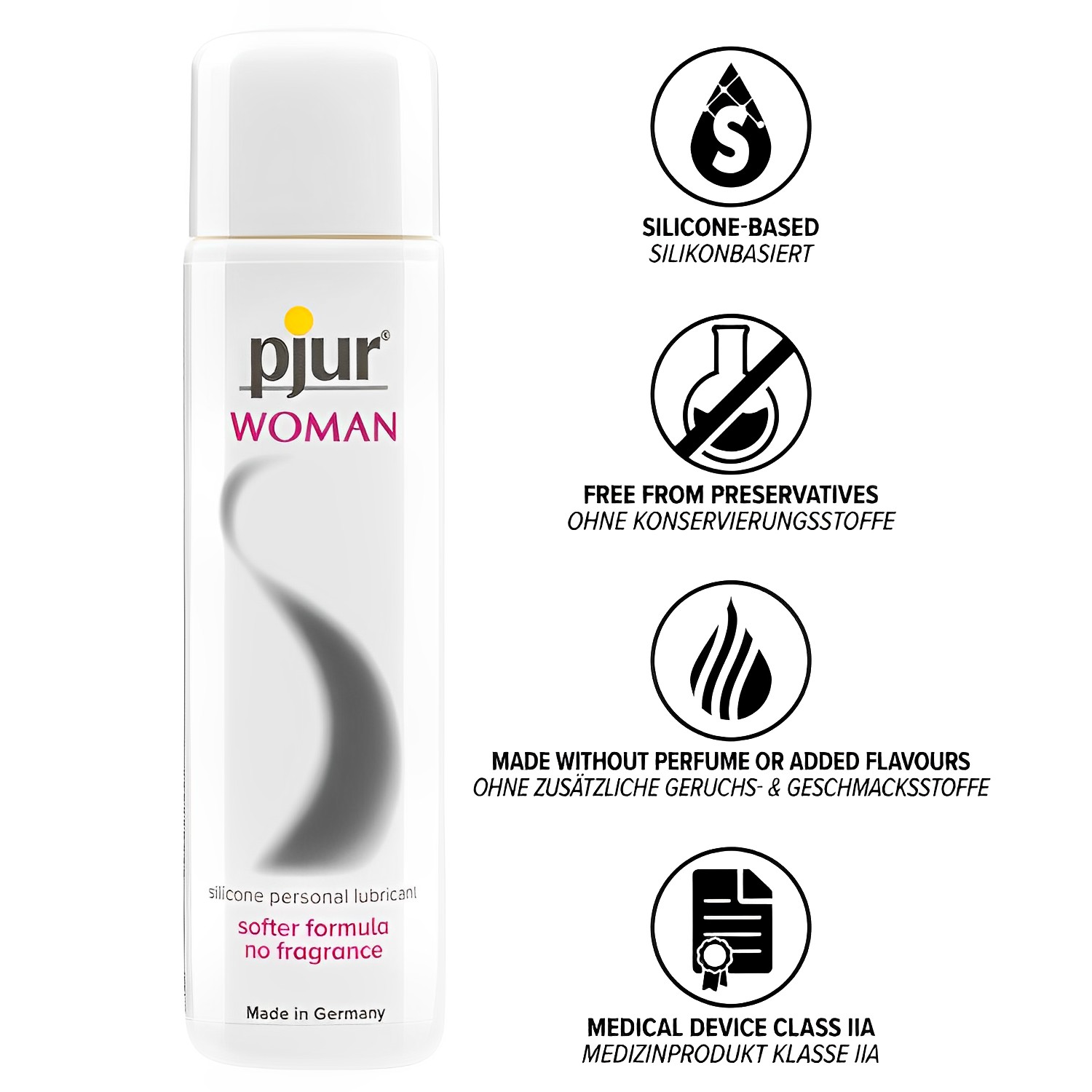 Pjur Woman - это более мягкая и менее вязкая формула, обеспечивающая сверхдлительную шелковистую смазку. Серия Woman была специально разработана для нежной и чувствительной кожи женщин. Помогает в комфорте и удовольствии от близости.