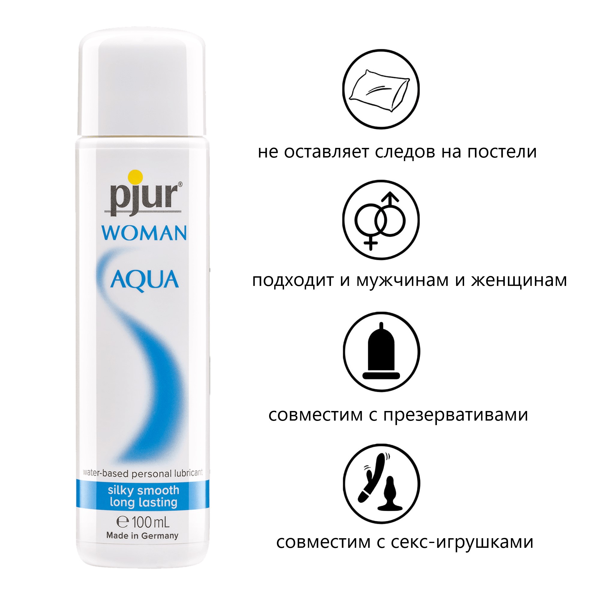 Это персональная смазка премиум-класса на водной основе, предназначенная для увлажнения и смазывания. Pjur Woman Aqua великолепно увлажняет, обеспечивая тем самым превосходный уход за сухой, поврежденной кожей - и не только в интимных зонах. Он нежирный и сделан без масла, отдушек и ароматизаторов.