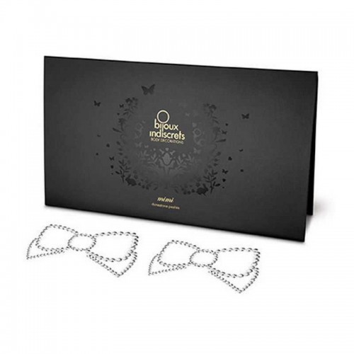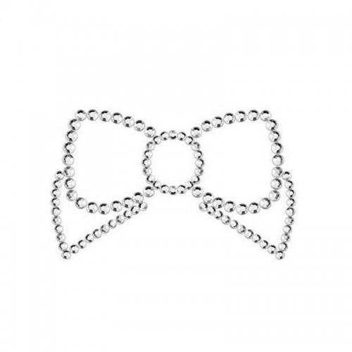 В комплект входят 2 наклейки на соски из множества серебристых кристаллов, создающих из себя красивый бантик в центе которых находиться сосок.