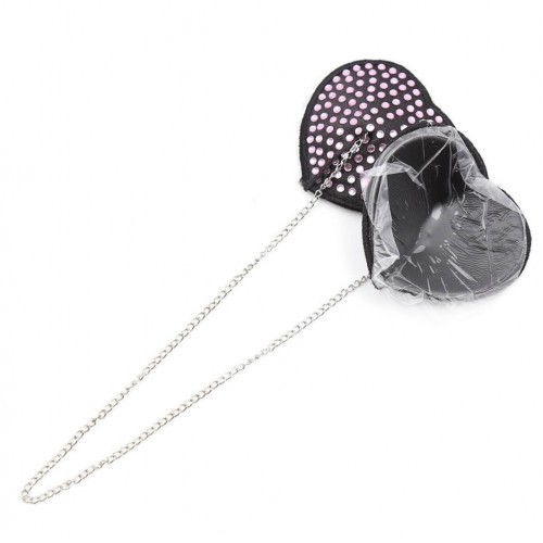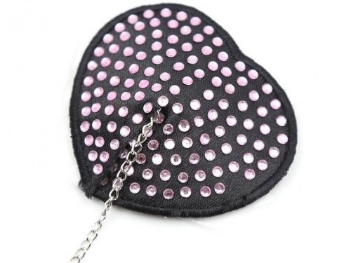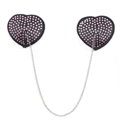Черные пэстисы-сердечки с розовыми стразами и цепочкой