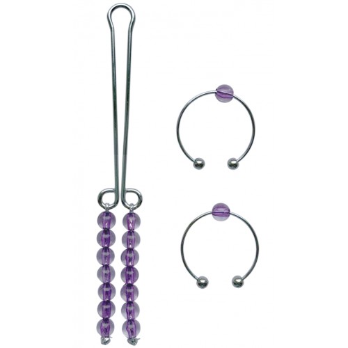 Этот набор представляет собой два изящных зажима на соски и клиторальную клипсу с бусинами – с ними Вы станете настоящей опасной девочкой, от которой стоит ждать чего угодно…И мужчина это заметит.