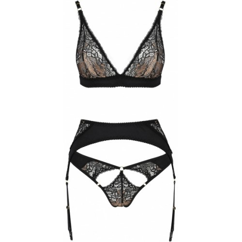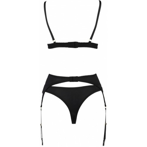 Чувственное эротическое нижнее белье классического кроя в сочетании незаменимого черного с золотым кружева.