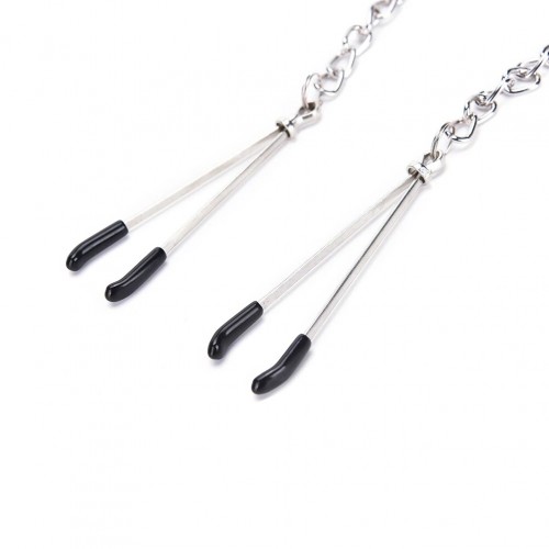 Цепь, которая прикреплена к зажимам, позволит расширить круг воплощаемых фантазий - Вы сможете прикрепить к ней дополнительные аксессуары, утяжелители... или просто тянуть за нее, чтобы еще больше обострить ощущения!