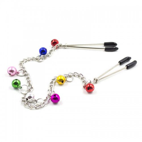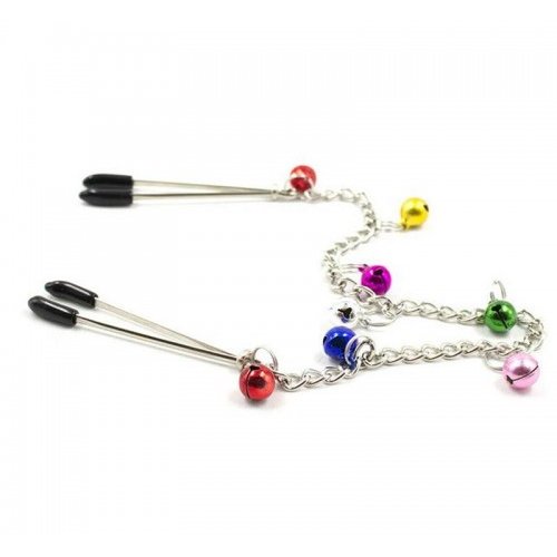 Зажимы для сосков с цепочкой и цветными бубенчиками
