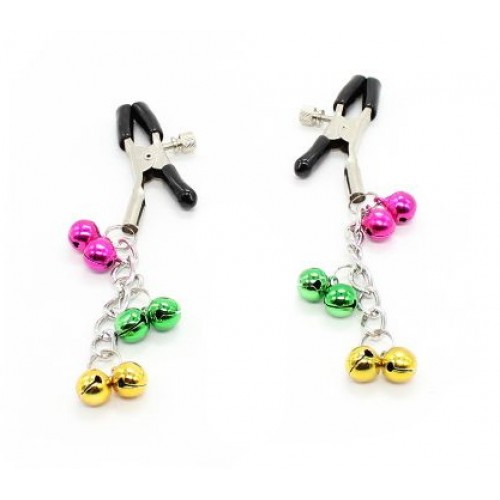 Зажимы для сосков с разноцветными бубенчиками