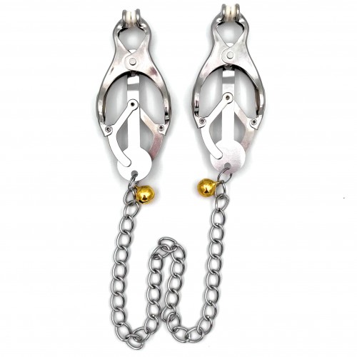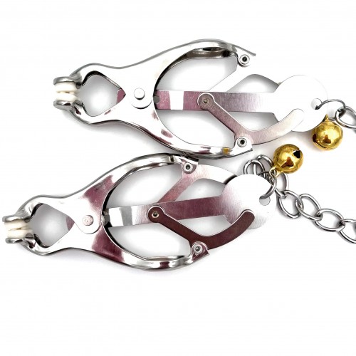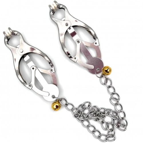 Серебряные клипсы на соски с цепочкой и колокольчиками