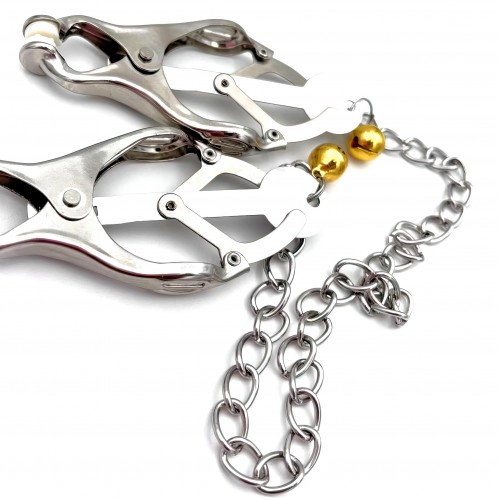 Цепь, которая прикреплена к зажимам, позволит расширить круг воплощаемых фантазий - Вы сможете прикрепить к ней дополнительные аксессуары, утяжелители... или просто тянуть за нее, чтобы еще больше обострить ощущения!