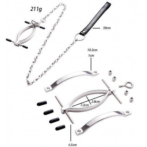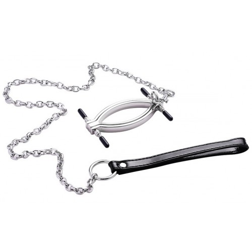 Во время игр Вы сможете руководить покорной рабыней -  стоит лишь присоединить к зажиму цепь с поводком!