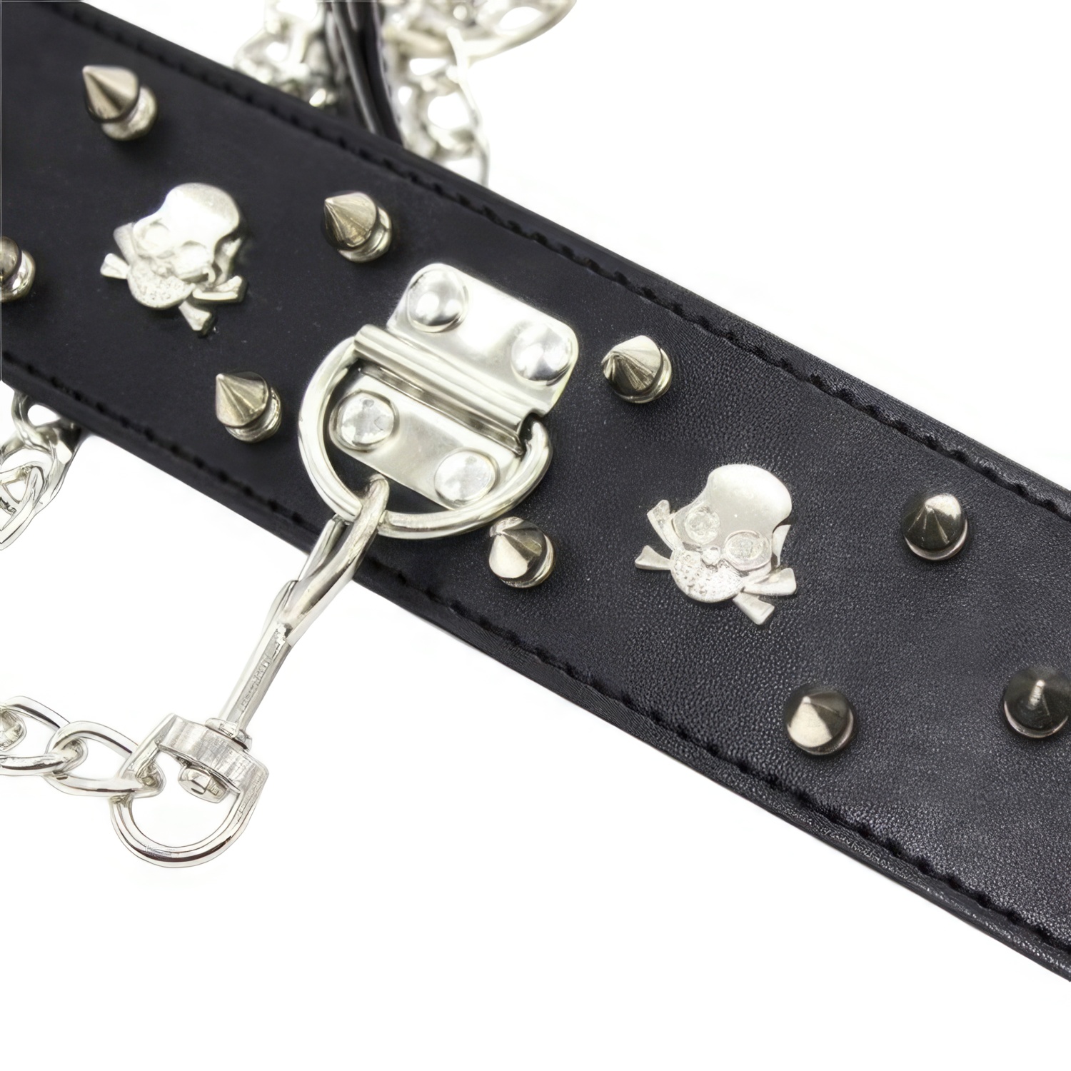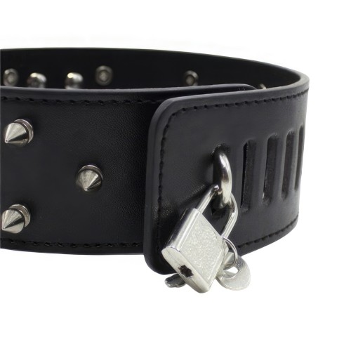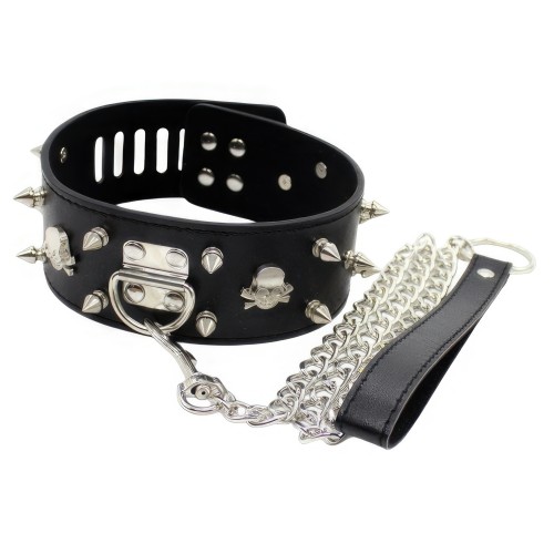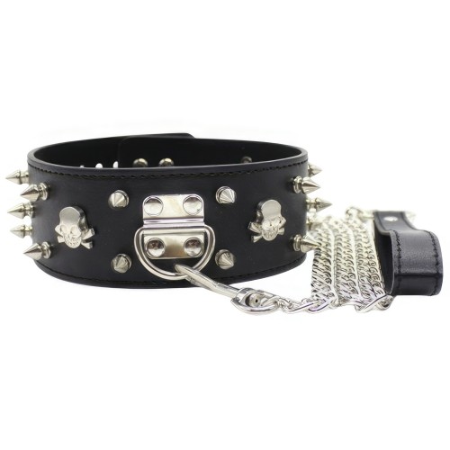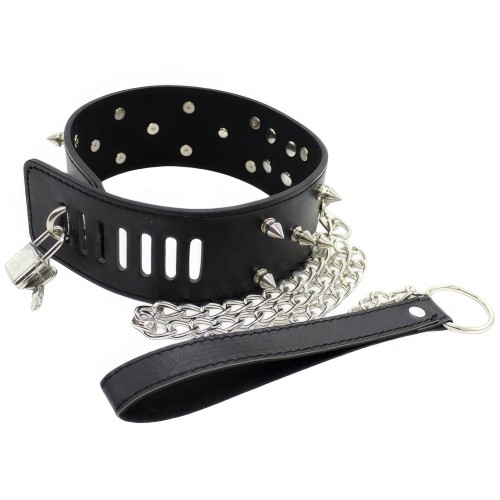Широкий черный ошейник с шипами и поводком