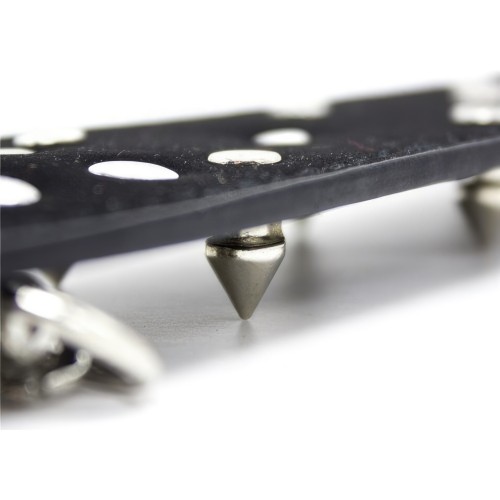 Размер: длина ошейника 45 см, ширина 5 см, длина шипов - 1 см, длина поводка с петлей 74 см.