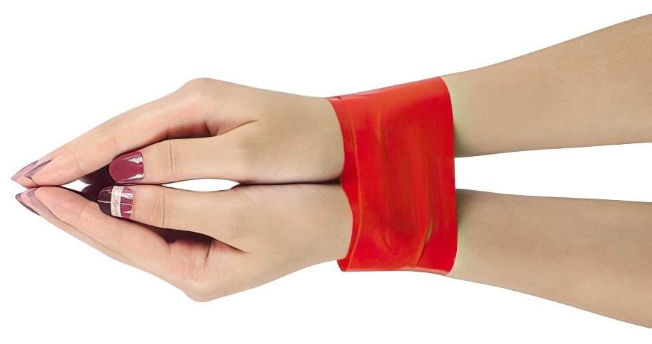 Глянцевая лента из ПВХ прилипает только к себе, не оставляет липких следов на теле или одежде.