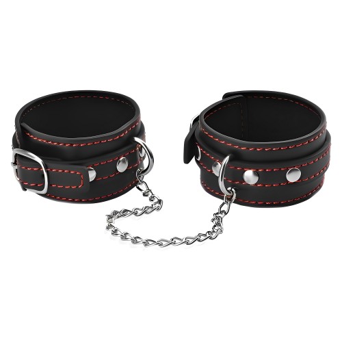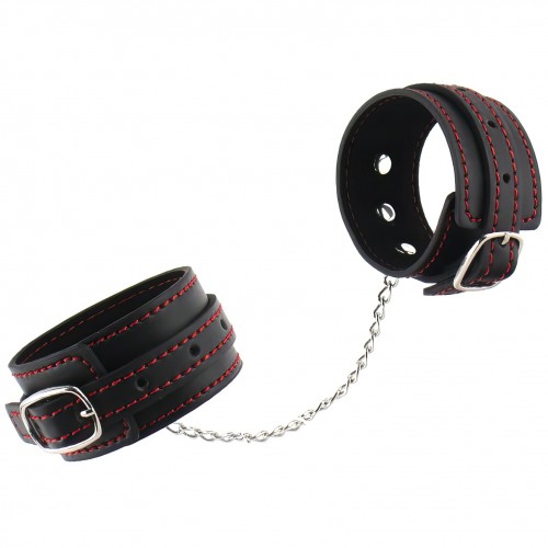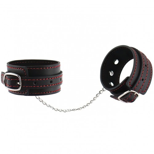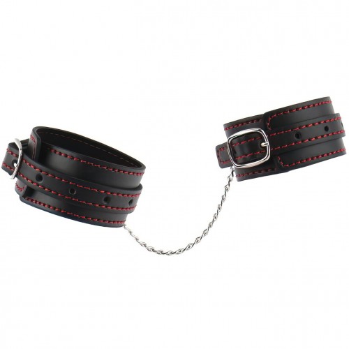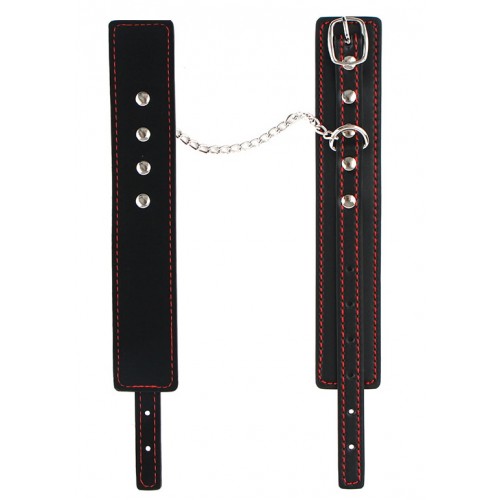 Узкие наручники черного цвета с красной нитью
