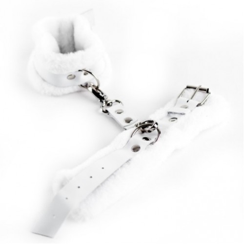 Легко, но надежно фиксируются ремнем, позволяя выбрать нужный размер. Кожаное соединение на карабинах фиксирует наручники вместе. Мягкий подклад из белого меха не будет натирать кожу запястий, а так же обеспечит комфортное прибывание в образе, помогая полностью погрузиться в БДСМ игру.