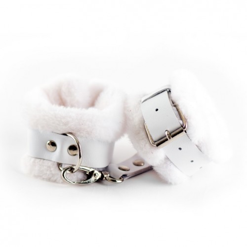 Наручники выполнены из натуральной кожи с мягким белым мехом.