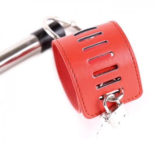 Выполненная из металла серебристого цвета, распорка оснащена креплениями для оков.
