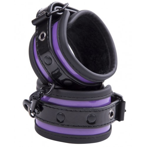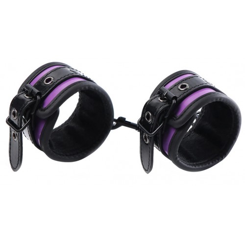 Металлическая фурнитура обеспечивает качественную фиксацию. Наручники соединяются между собой цепью с карабинами, благодаря чему обеспечивается достаточно жесткая сцепка.