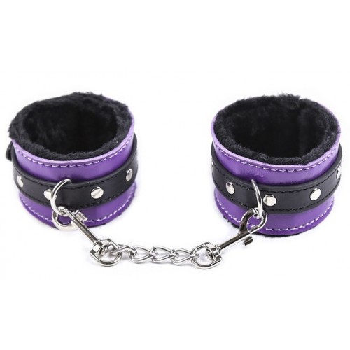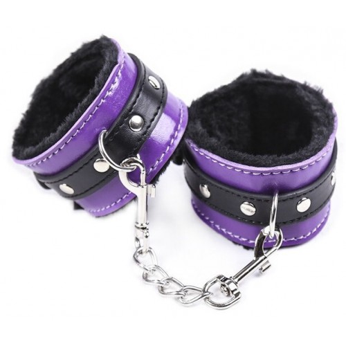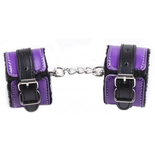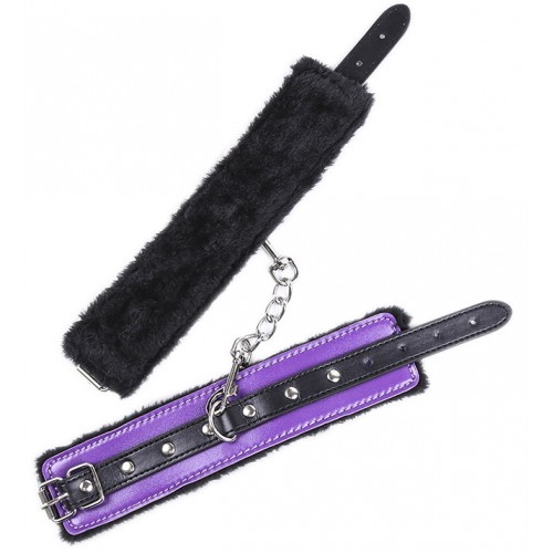 Черно-фиолетовые наручники с мехом