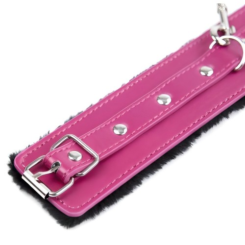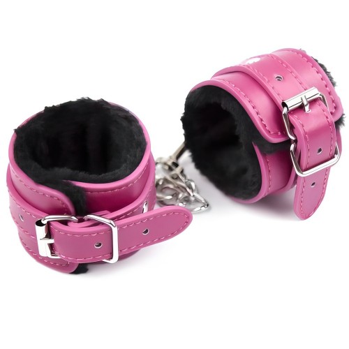 Металлическая фурнитура обеспечивает качественную фиксацию. Наручники соединяются между собой цепью с карабинами, благодаря чему обеспечивается достаточно жесткая сцепка.