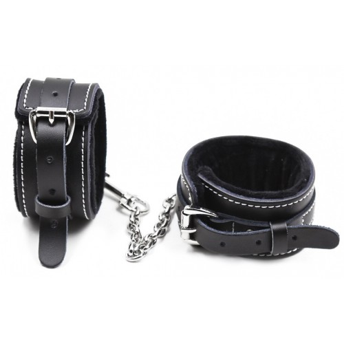 Мягкие черные наручники из натуральной кожи