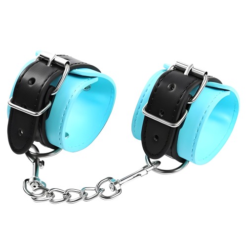 Голубые наручники с черными ремешками
