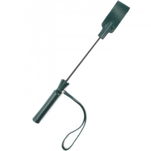 Рукоятка стека из натуральной кожи изумрудного цвета, на конце девайса расположен кожаный шлепок.