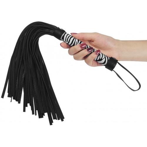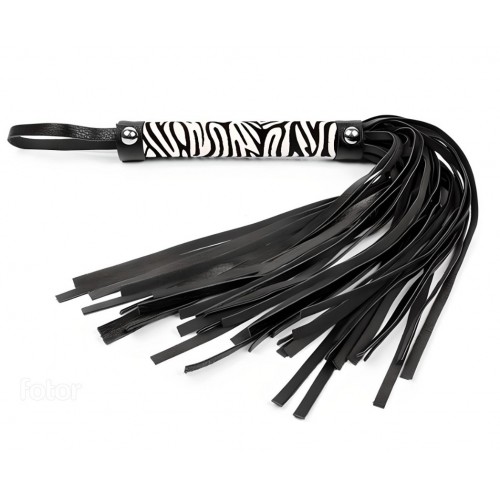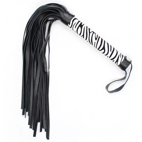 Компактная черно-белая плеть с тигровым принтом на рукояти 39 см
