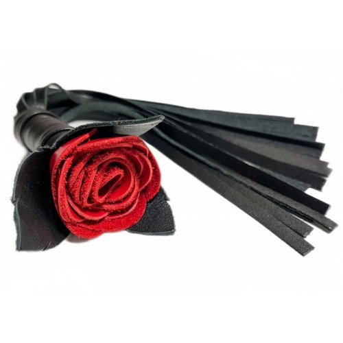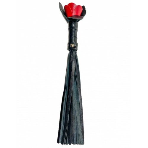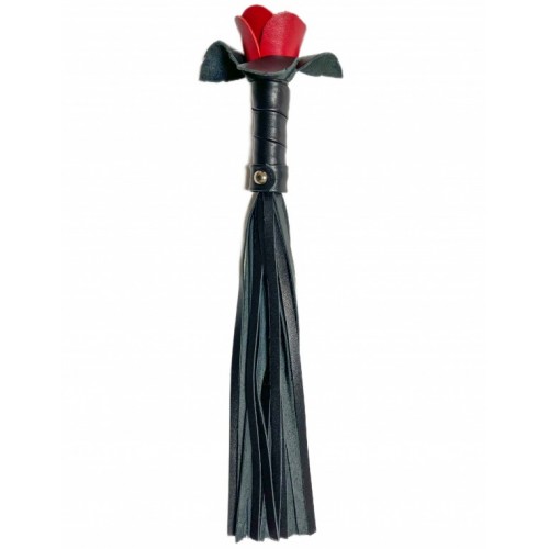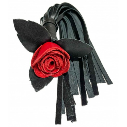 Черная кожаная плеть Красная Роза 40 см
