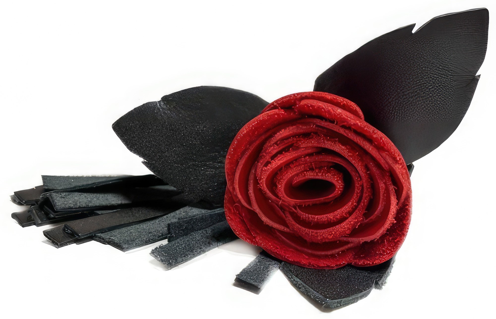 Розочка из красной кожи очень удобно лежит в руке и создает неповторимую атмосферу и настроение, этот аксессуар никого не оставит равнодушным.