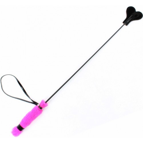 Стек из натуральной кожи с наконечником сердце и ручкой из розового меха