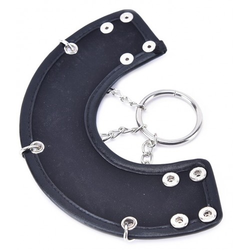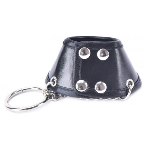 Цепочки крепятся к утяжке и соединяются внизу со специальным кольцом, на которое можно вешать дополнительные грузики, увеличивая напряжение на мошонку - кольцо удерживает грузики до 1,3 кг.