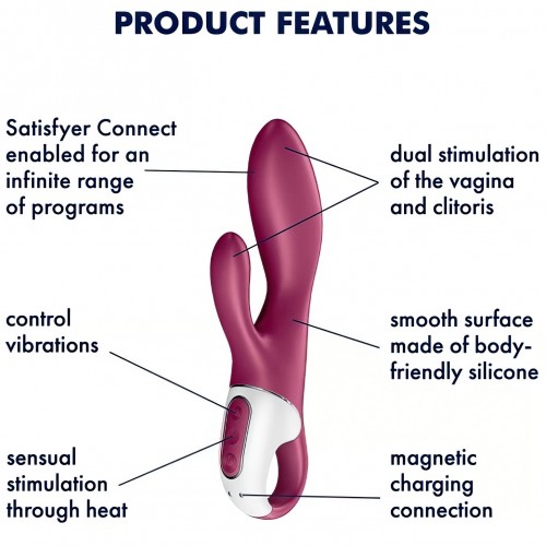 Данный вибратор представляет собой классический вибратор-кролик со специальным отростком для стимуляции клитора. Также смарт-вибратор имеет функцию нагрева. Температура достигает до 36 градусов для более комфортной стимуляции внутри влагалища.