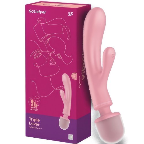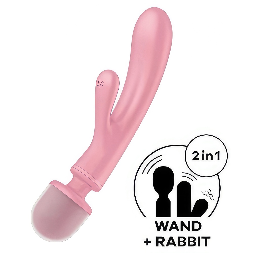 Двусторонний вибратор с клиторальным стимулятором Wand + Rabbit Satisfyer Triple Lover